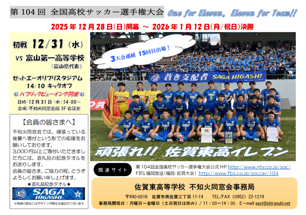 「佐賀東高」を背負って頑張る後輩を年末の準備の手を少しだけ休めてみんなで一緒に応援しませんか?